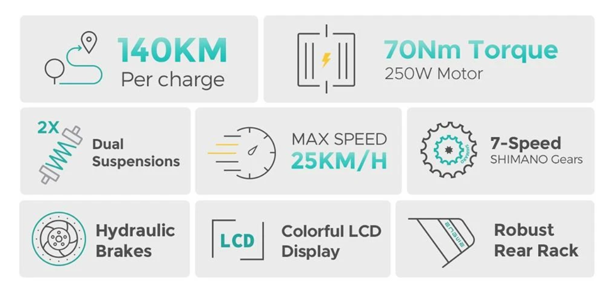 Range: Up to 140 km with pedal assistance (PAS mode)